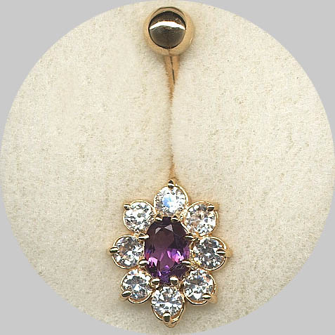 精巧なカットのジェムと、中心に大き目のカラージェムがセット |